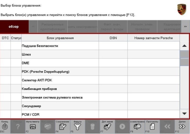 Номер запчасти Porsche можно считать после завершения программирования блока управления с помощью тестера PIWIS в меню “Расширенные идентификации” из блока управления DME.