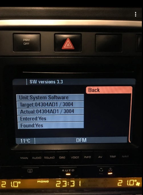 Ругается на отсутствие телефона, которого тоже у меня никогда не было, допустим это делается тоже через пивис, но вот, что интересно, когда я жму кнопку CD то в нижней части дисплея выводится - internal telephone not available, что вообще уже как то не вяжется, оно же выводится, когда жмешь соседнюю кнопку, не помню как называется, полез посмотреть на картинках и тут появилась зацепка, в интернете на картинках я вижу PCM где верхние кнопки обозначают телефон, а у меня это CD и что то ещё, а под ними FM и AM, т.е. получается какая то другая версия и скорее всего прошивки тоже должны быть разные, а у меня прошивка от той, что я вижу на картинке.