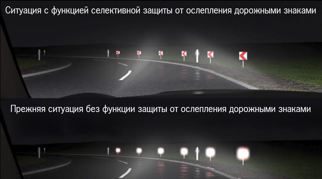 Дальний свет с адаптируемой контрастностью: селективная защита от ослепления дорожными знаками