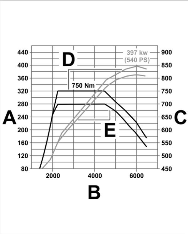 повышению мощности с 368 кВт (500 л.с.) до 397 кВт (540 л.с.)