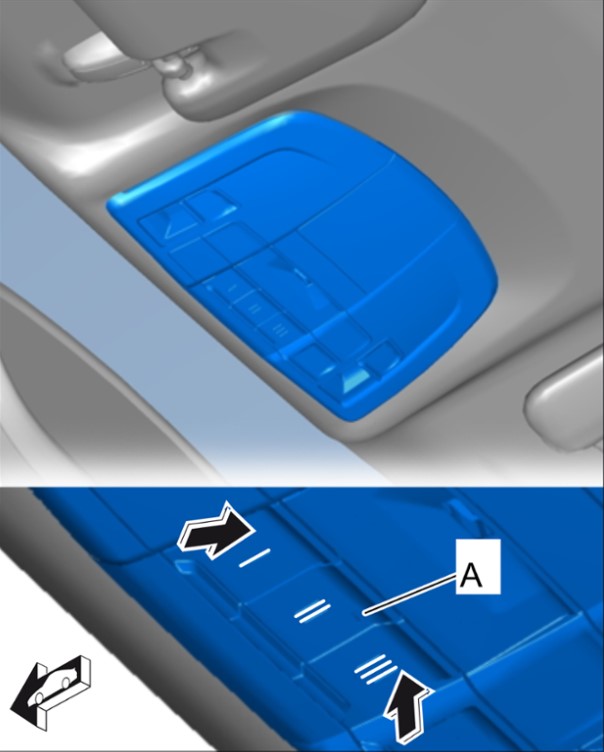 2 Нажать клавишу II на потолочной консоли и удерживать ее нажатой прибл. 50 секунд, пока контрольная лампа не погаснет. Продолжать удерживать клавишу II. Через несколько секунд контрольная лампа мигает несколько раз. Количество миганий соответствует запрограммированному региону.