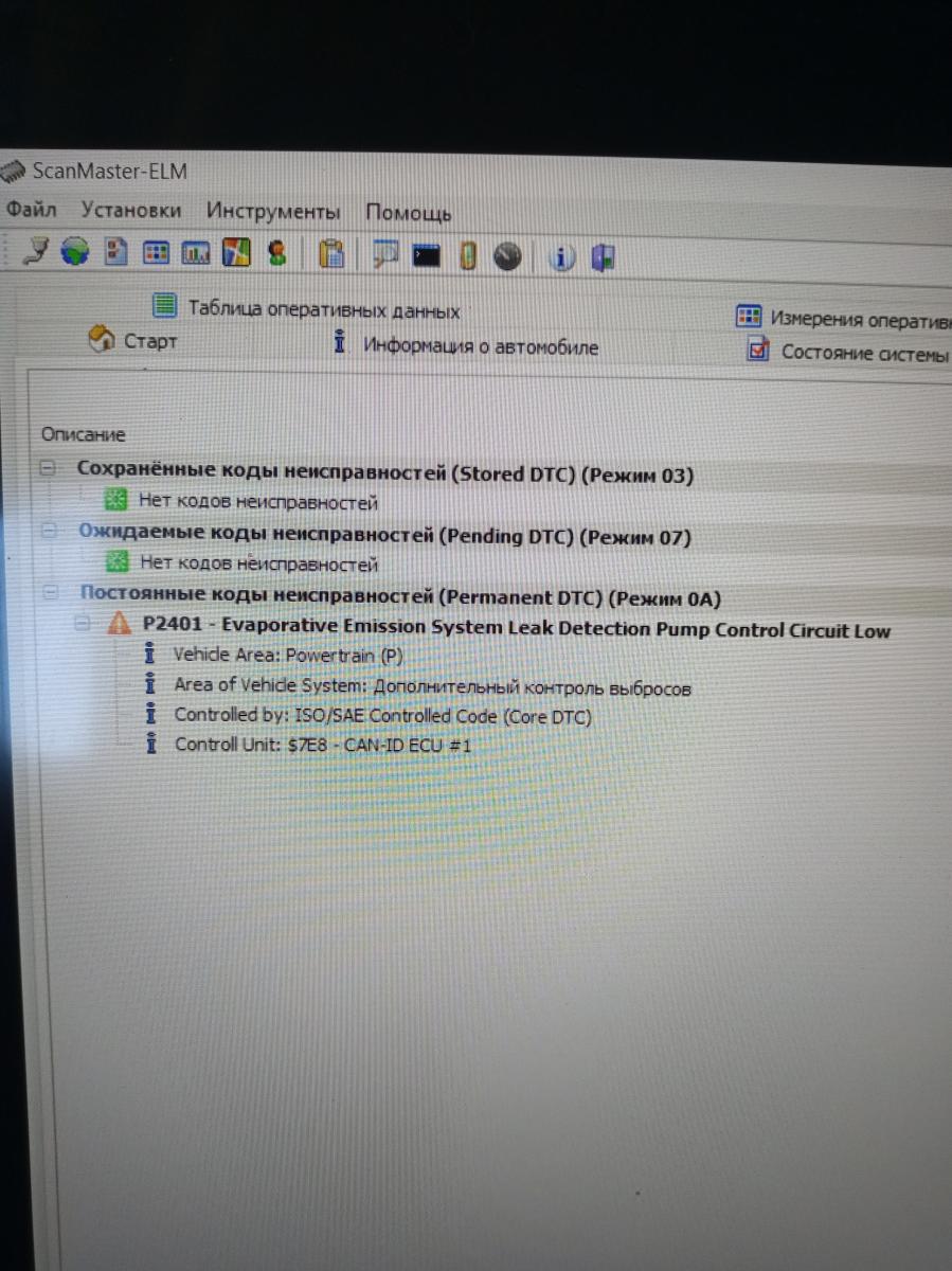 Добрый день. В виду моей неграмотности с диагностикой, вот что я смог. Там еще есть всякие тесты где надо выбирать что тестировать, но для меня это темный лес. Может по тому что здесь можно вынести какой либо приговор? И заодно по этой ошибке (P2401 — Система вентиляции топливного бака, подача сигнала управления на насос диагностики утечек топлива: короткое замыкание на массу). Где и что надо смотреть? Спасибо за участие.