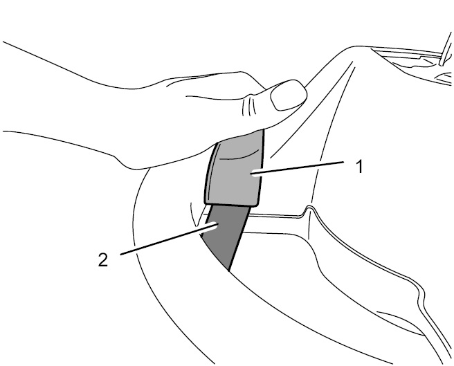 1.1. Поддеть накладку -1- на качающемся переключателе.
