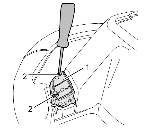 Осторожно поддеть накладку -1- на качающихся переключателях пластиковым клином -2- и снять ее.