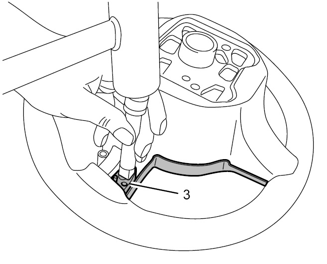 Приложить к облицовке рулевого колеса -3- 1/2-дюймовый удлинитель и отжать облицовку рулевого колеса -3- от рулевого колеса направленным ударом молотка. Повторить процесс с другой стороны и снять облицовку рулевого колеса -3- .
