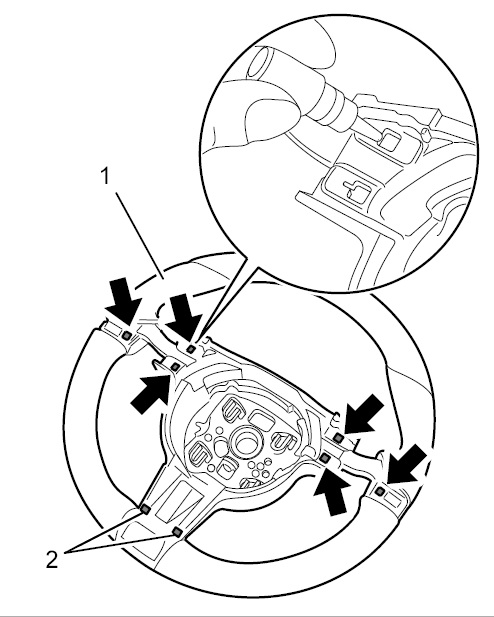 2.1.1. Заполнить крепления (6 шт.) -стрелки- облицовки рулевого колеса двухкомпонентным клеем.