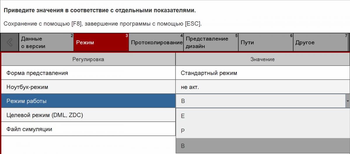 По умолчанию установлен режим "B", нужно поставить режим "E"