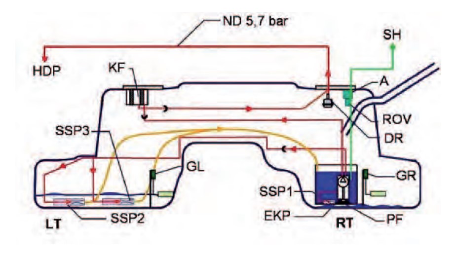 SSP2 эжекционный насос слева (0,42 мм, 5,7 бар), заполняет резервуар