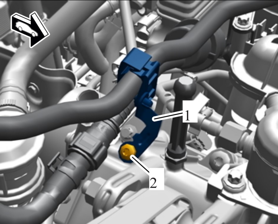 10 Снять держатель топливопровода и трубопровода вентиляции топливного бака -1- с крышки головки блока цилиндров.