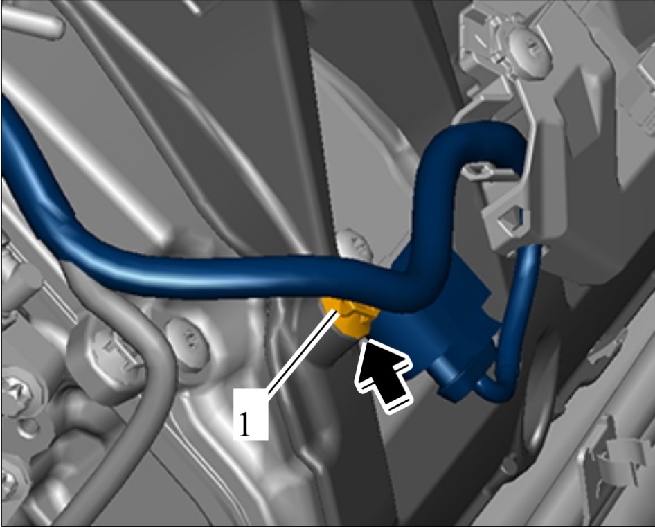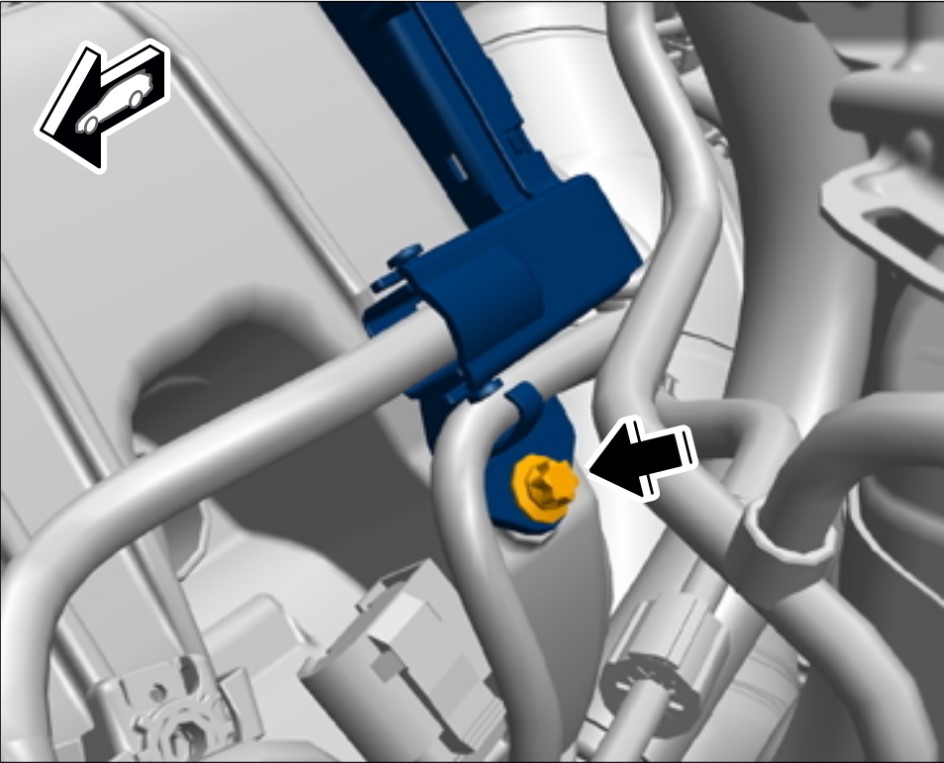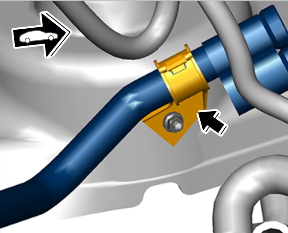 12 Ослабить винт крепления держателя трубопроводов кондиционера.