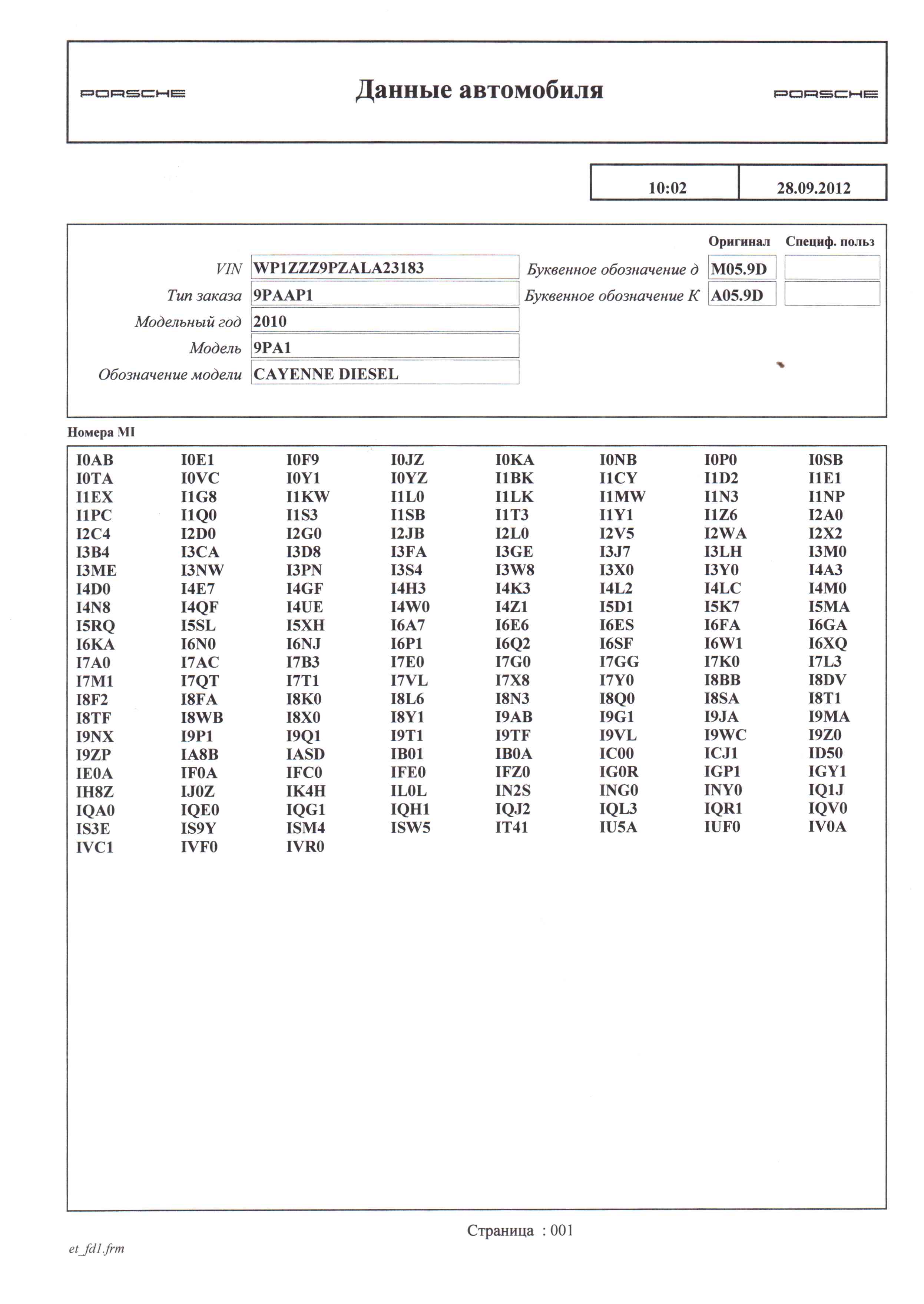 Комплектацию можно проверить в любом специализированном сервисе PORSCHE