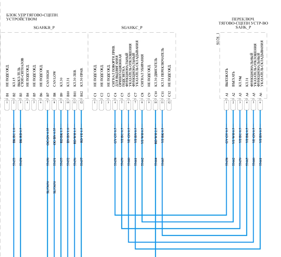 А синий разъем по идеи должен быть короткий жгут (БУ-кнопка) и на схеме он как бы отдельно.Не пойму где загвоздка.