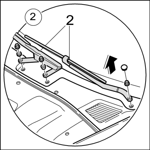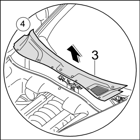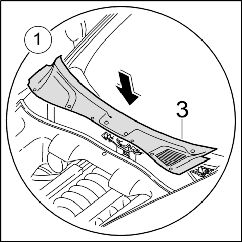 Снять нужно поводки переднего стеклоочистителя и накладку пластиковую трапеции переднего стеклоочистителя.