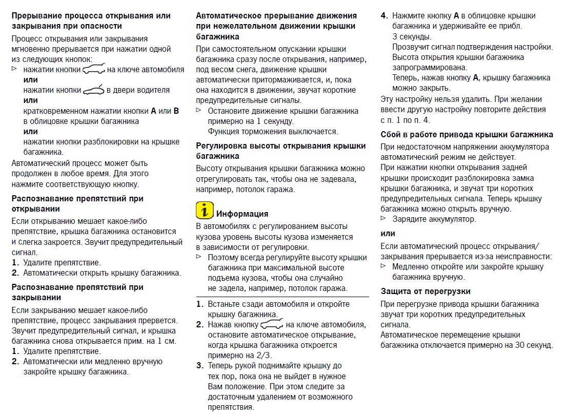 Если автоматическое открывание крышки багажника не работает, возможно есть ограничение или сбои в работе системы. Нужно обратится на сервис.