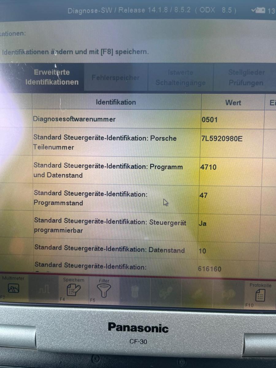 1. Подключить к автомобилю и запустить системный тестер Porsche. Включить зажигание. Далее по клавише >> .