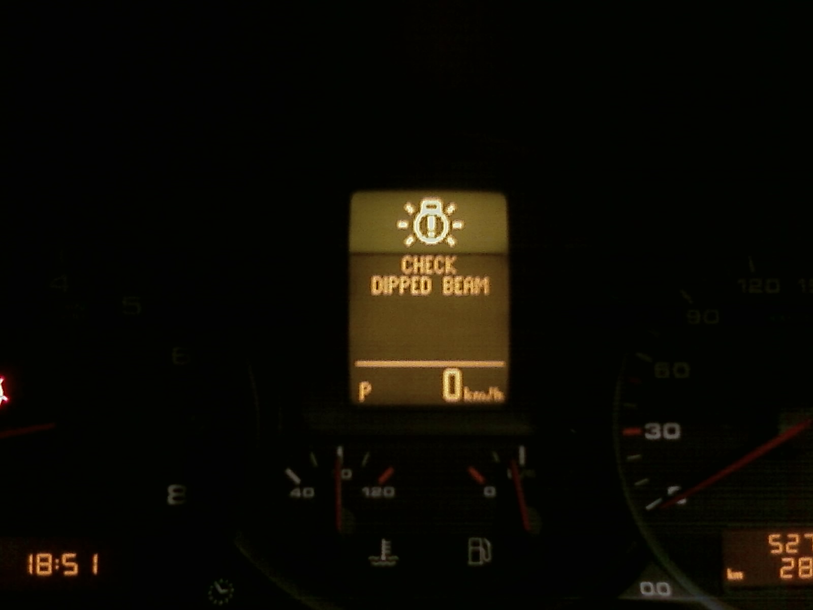 Бляха, сейчас посмотрел, при старте, зажегается лампа, начинает разогреваться и через 10 секунд тухнет...сразу идёт сигнал check headlight beam ajastment, а потом check dipped beam