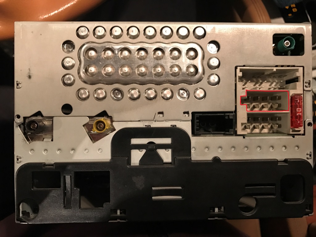 Владимир подскажите, что за разъём, к нему не подходит фишка, может когда снимали, засунули ее куда нить, по распиновке ничего не нашел, может знает кто? Красным обведено. Очень долго ездил без музыки и забыл уже что куда подключается, все фишки подключил, а этот разъём остался и фишек нет.
