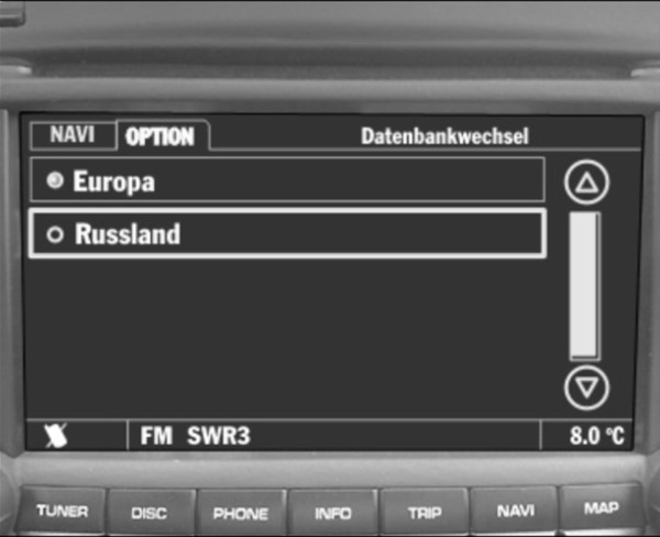 Выбрать базу навигационных данных в PCM3.1 клиент может следующим образом: