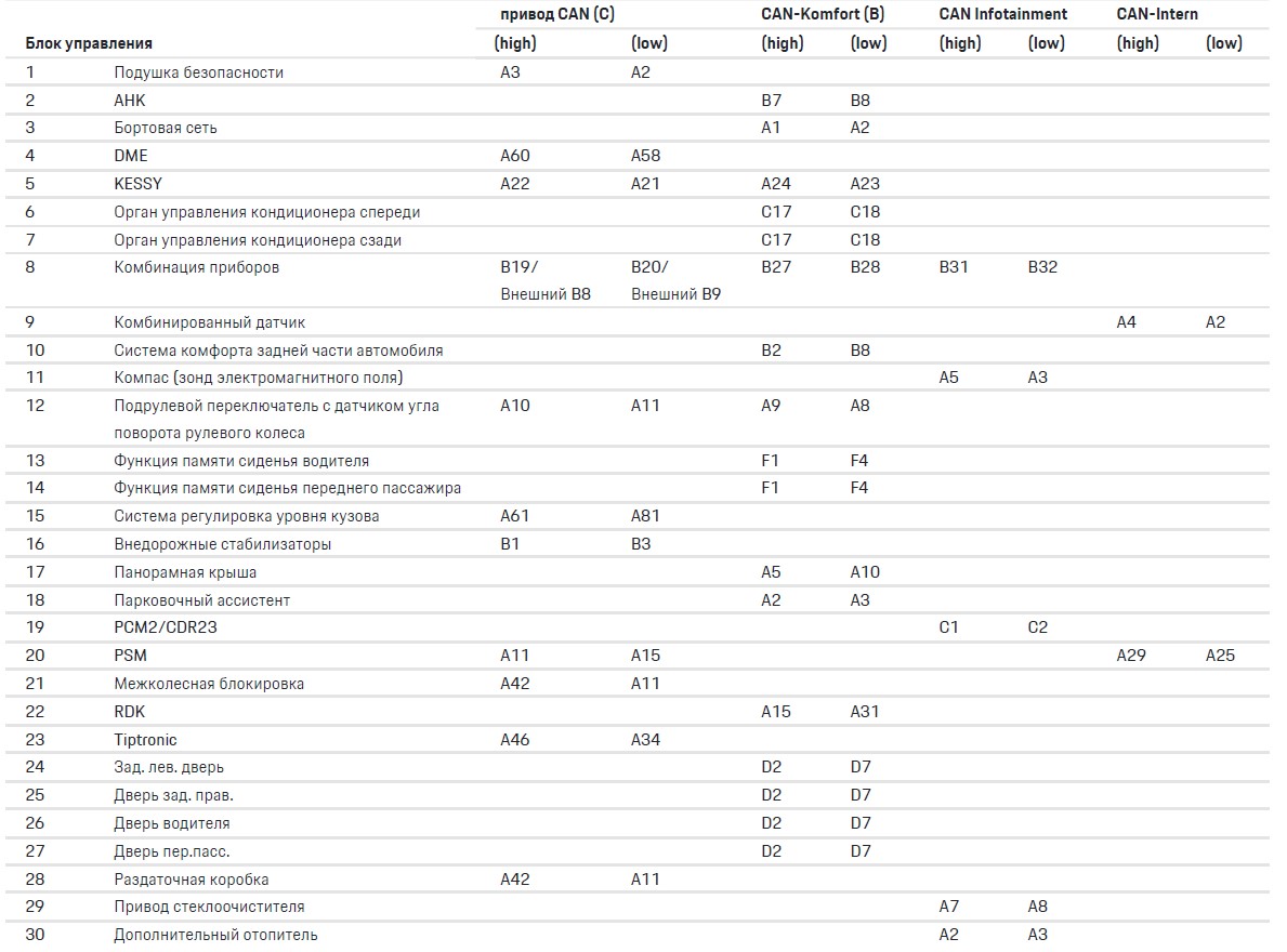 находится PDF файл в котором подробно расписано, какие блоки управления относятся к каждой шине