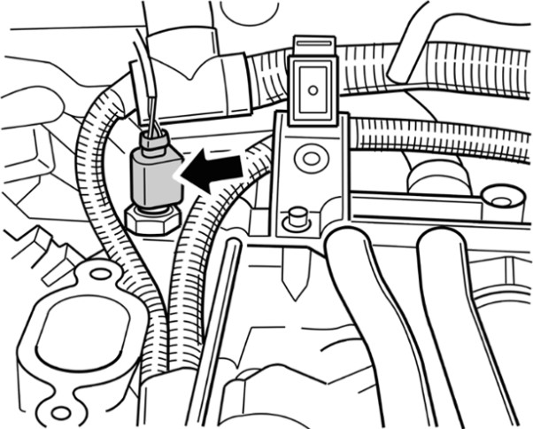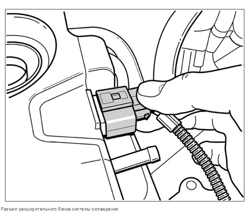 • Нарушение контакта с установленными контактами в разъеме для датчика уровня охлаждающей жидкости на расширительном бачке ОЖ.