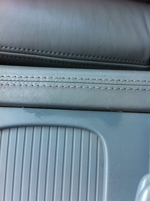 Вобщем в некоторых случаях получается вполне удачно избавиться от скрипа, если приходится обрабатывать детали, которые не на виду (резинки дверей, внутренние края крышки подлокотника) Но если например нужно обработать стык, который образуется видимыми декоративными поверхностями, то лучше конечно разобрать и обработать непосредственно место соприкосновения. Иначе спрей оставляет видимые следы (см. фото) причем на коже он почти не заметен, а вот на пластике очень хорошо заметен. Отмывать пятно я пока ничем не пробовал. В выходные на мойке попробую.