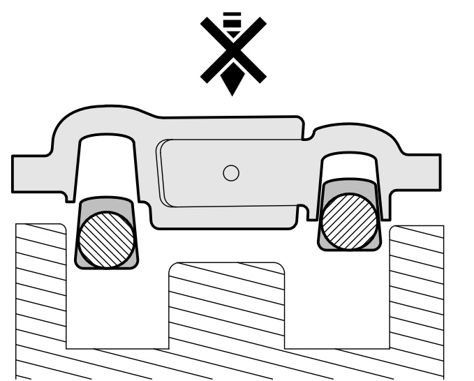 10. Фиксирующий инструмент установлен на ГБЦ неровно. Необходимо соблюдать одинаковое расстояние с обеих сторон. Внимание: в данном случае неправильную установку можно не заметить.