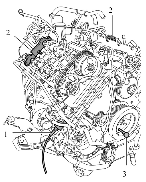 3 - Стопорный штифт фиксирует коленвал в ВМТ цил. 1.