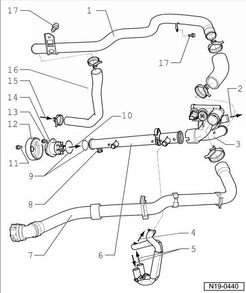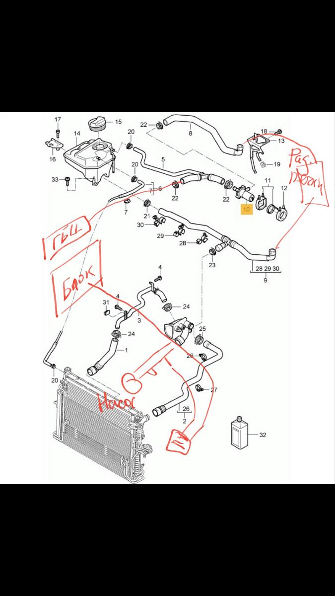 Схема подключения шлангов системы охлаждения
