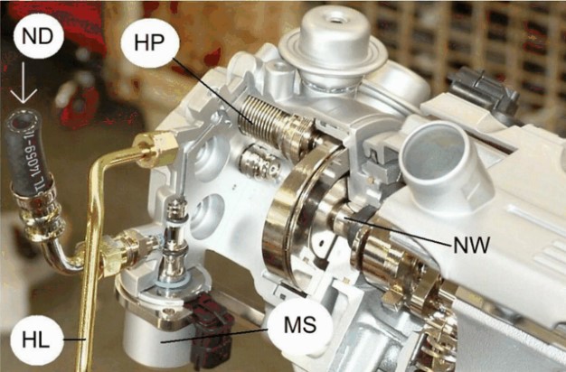 Клапан регулировки количества топлива, установленный в двигателях V8 на входе насоса высокого давления, регулирует высокое давление топлива.