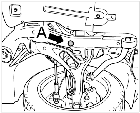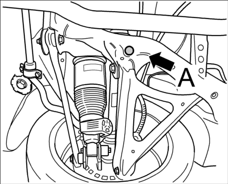 Измеряется от поверхности контакта шины до нижнего края продольной балки подрамника -A- (перед сливным отверстием рядом с точкой крепления поперечного рычага на подрамнике).