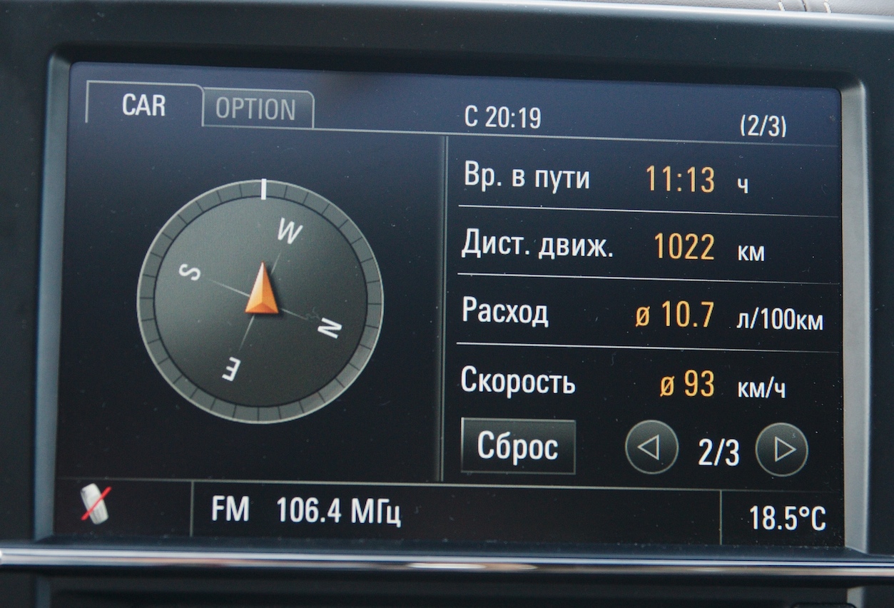 По расчетам бортового компьютера, бака сотого на моей машине должно хватить гдето на 850 километров.