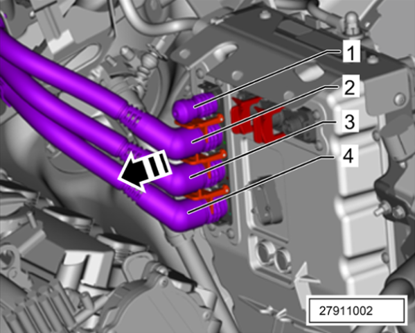 На силовом электронном блоке нужно проверить разъем пилотной линии -1- (быстроразъемная муфта)