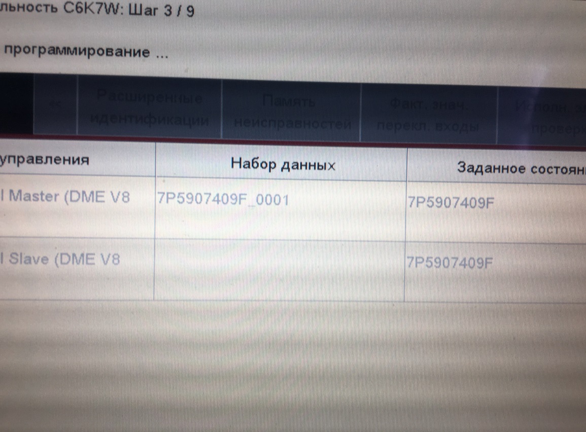 программирование DME в процессе программирования набор данных заданное состояние 7P5907409F, хотя должно было быть 7P5907409D.не проходит , повторяют два раза и куча ошибок.