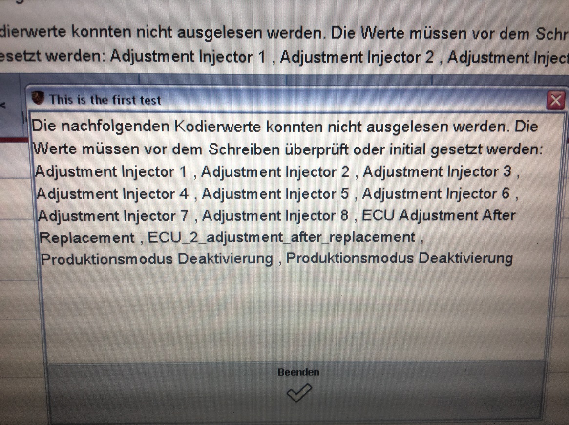 пробовали считать данные через замену блока управления .при считывании данных с блока управления,считывание проходит успешно только выдается сообщение что не получилось считать ima-isa форсунок , регулирование ecu после замены. есть на фото.