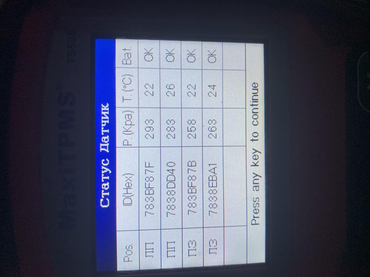 а вот фото прибора который выше я выложил с кодами каждого датчика я сделал на днях и уже успел их с помощью диагноста вбить в 4 графы меню TPMS, толку опять нет. А до этих данных с прибора во всех 4х графах были только 00000000 вот такие цифры.
