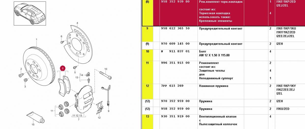 Просьба подсказать номера необходимых запчастей для смены тормозных дисков и колодок передних и задних. WP1AB2A25DLA83776