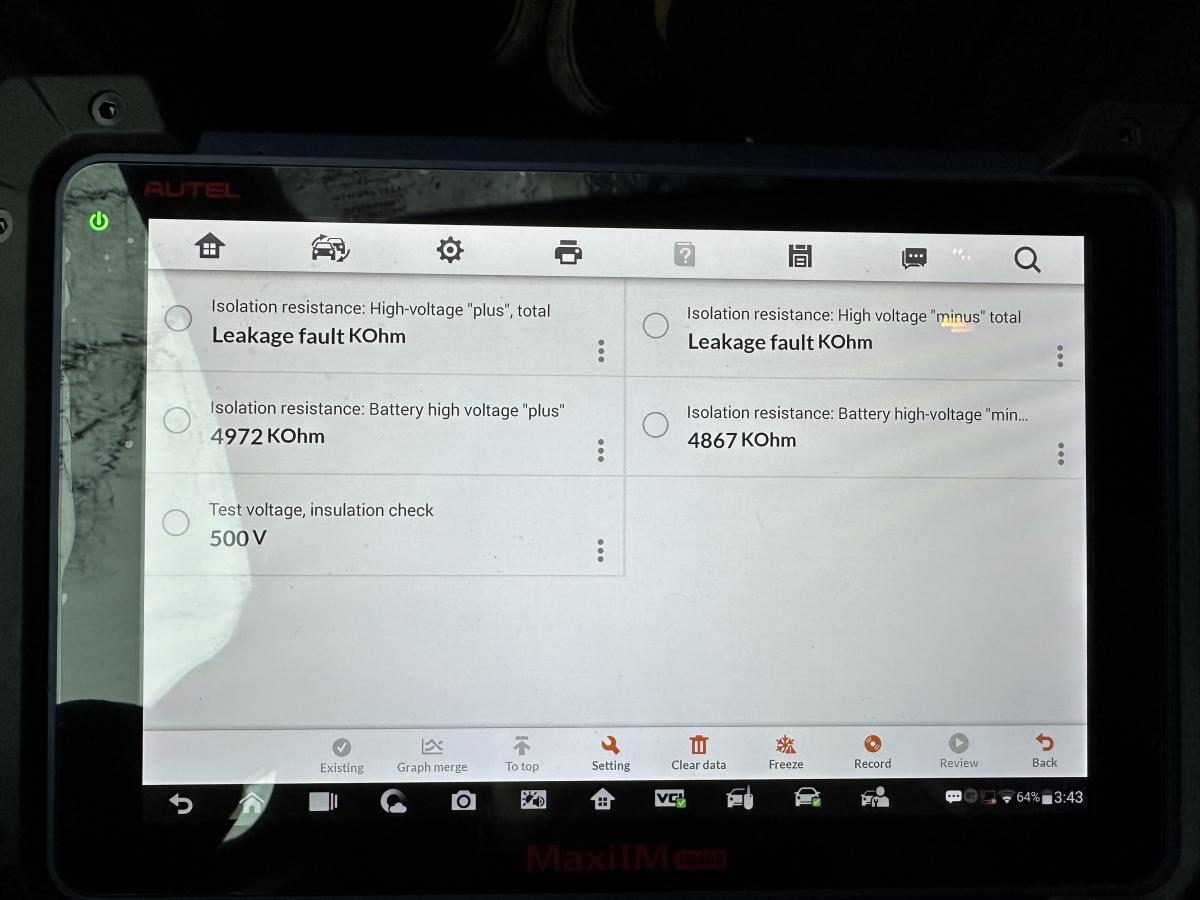 Когда электромотор не работает, пишет Leakage fault в переменных High-voltage "plus" total и High-voltage "minus" total, а в Battery high-voltage "plus" и Battery high-voltage "minus" показывает сопротивление, а когда мотор работает, то наоборот, хотя опрос происходит с интервалом в несколько секунд.
