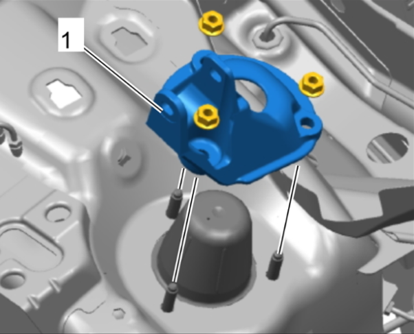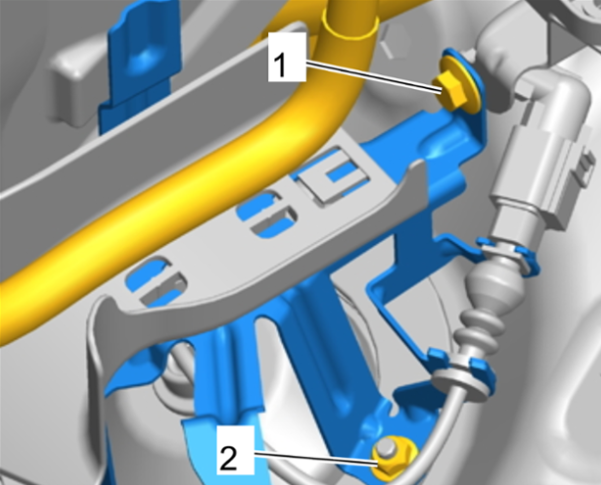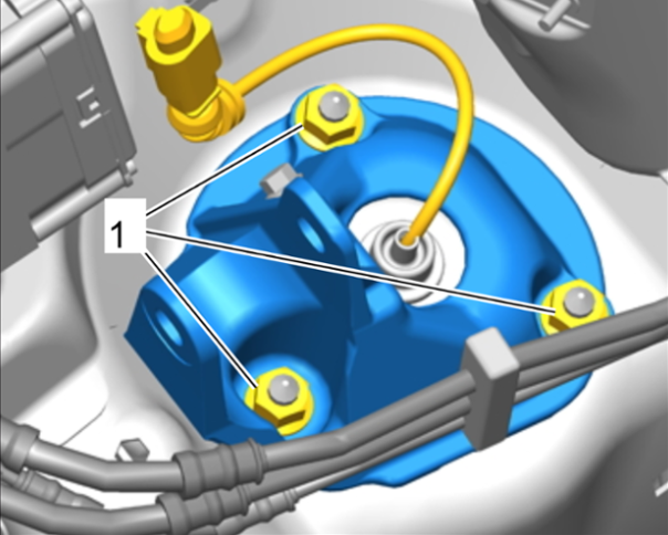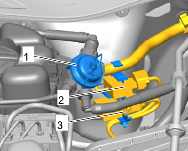 2 Отвернуть держатель бачка PDCC в моторном отсеке слева на резьбовых соединениях -1, 2- и вынуть держатель.