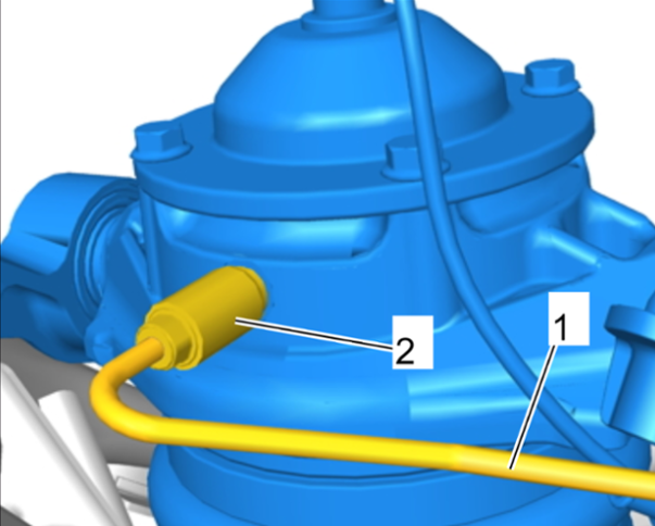 4 Отсоединить напорный трубопровод -1- на редукционном клапане -2- с помощью вставки. Затем отложить напорный трубопровод в сторону и закрыть его подходящей заглушкой.