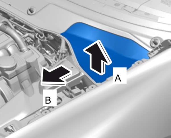2 Поднять защитную крышку справа -A- и отсоединить ее движением вперед -B-.