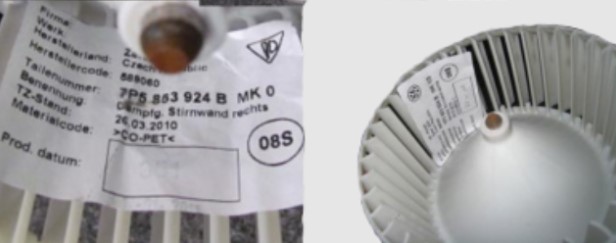 Бирка на звукоизоляции передней стенки может отстать, попасть в вентилятор системы отопления и кондиционирования и затем вызывать шумы в крыльчатке вентилятора (Рис. 1).