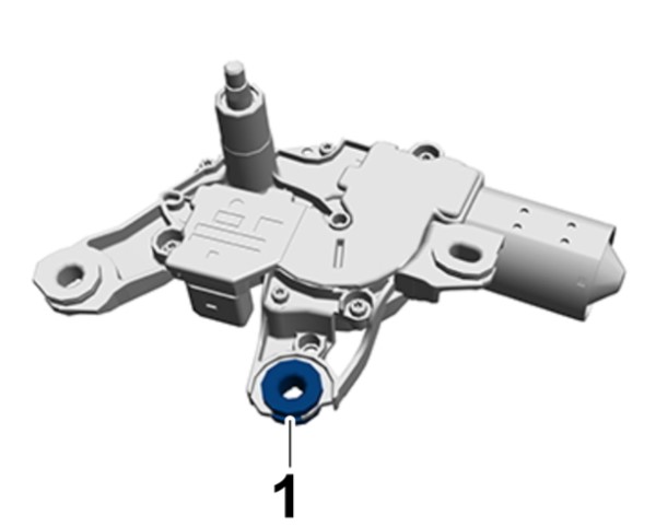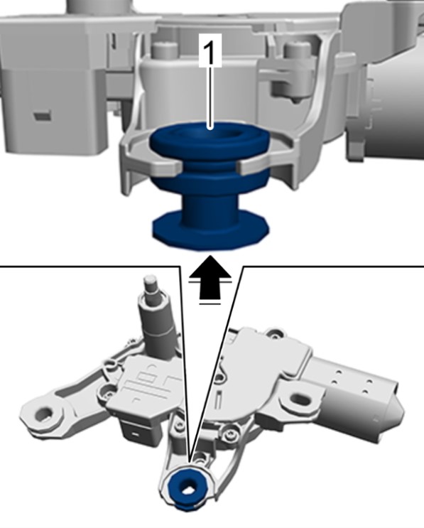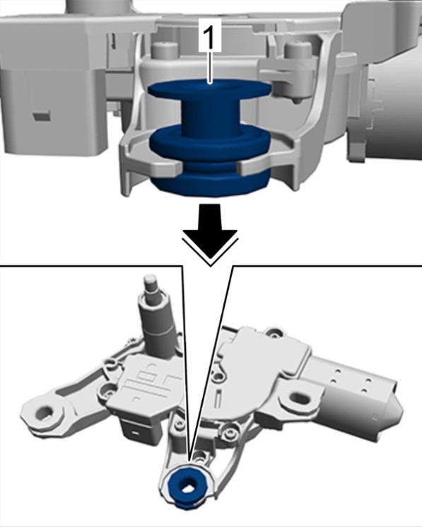 2 Установить двигатель заднего стеклоочистителя с подкладными шайбами -поз. 1-