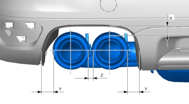 Y ТОЛЬКО Cayenne Turbo, минимальное расстояние между левой и правой спортивной выпускной трубой