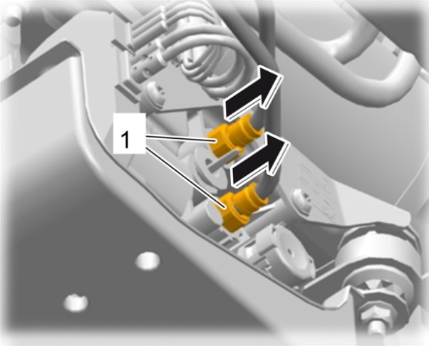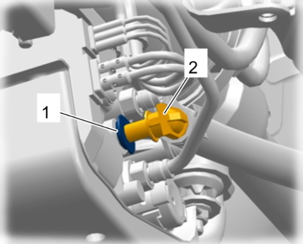 2 Отсоединить электрический разъем -1- от крепления -2-.