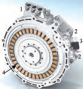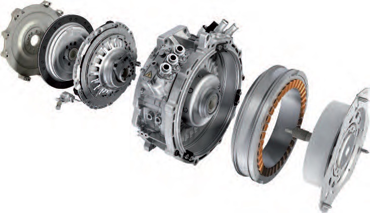 Корпус гибридного модуля, выполненный методом алюминиевого литья под давлением, длиной 70 мм находится между ДВС и автоматической коробкой передач. На корпусе находятся трехфазные токоподводы, через которые модуль соединяется напрямую с силовым электронным блоком. Через эти 288-вольтные кабели осуществляется отбор мощности либо питание электроустановки.