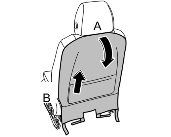 1 Потянуть пластиковые накладки на каркасе сиденья вперед и вывесить их -стрелка A-.