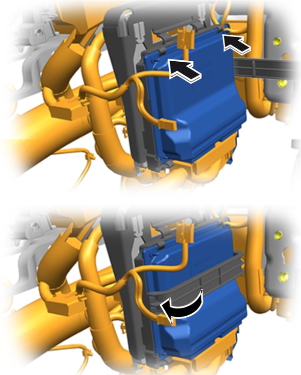 2 Отжать фиксаторы на блоке управления PDK в сторону и разблокировать блок управления PDK из держателя.