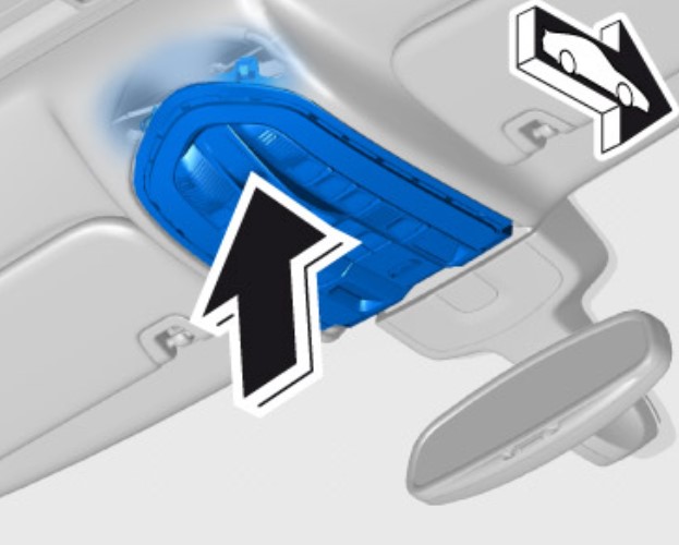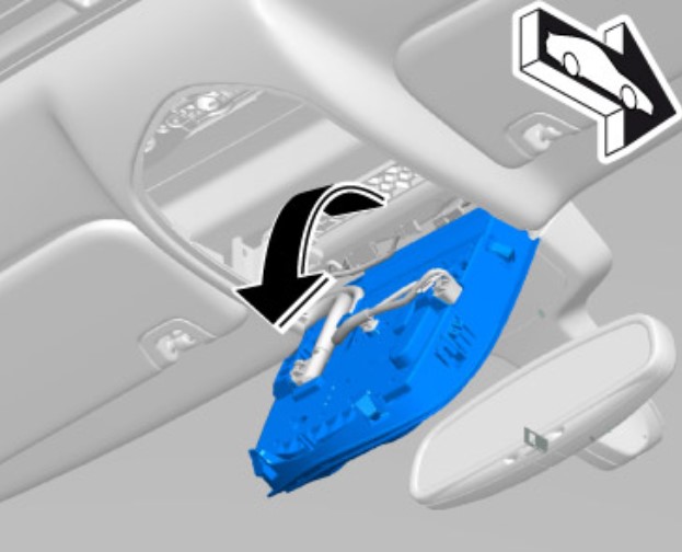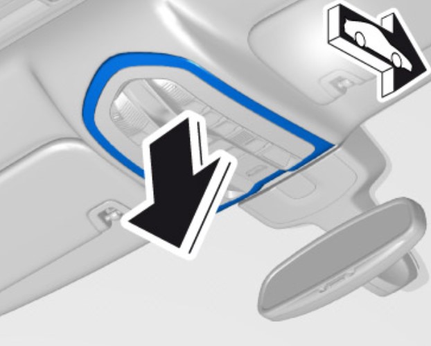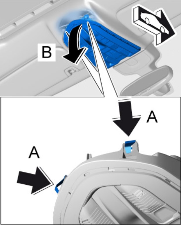 3 Разблокировать обшивку потолка в обеих боковых выемках -A- на наклонить ее назад -B-.