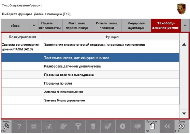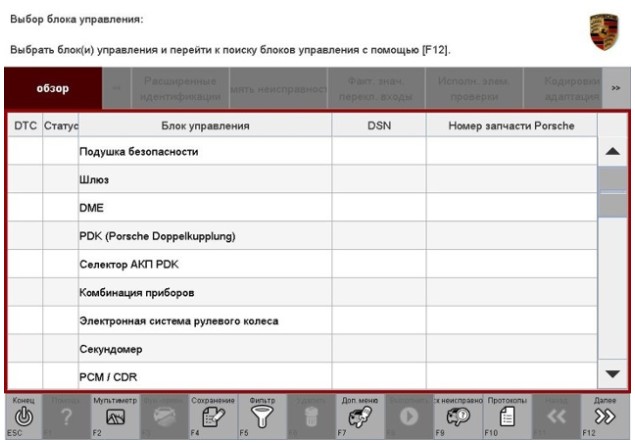 1 В разделе “Выбор блока управления” (меню “Обзор”) открыть дополнительное меню с помощью клавиши F7.
