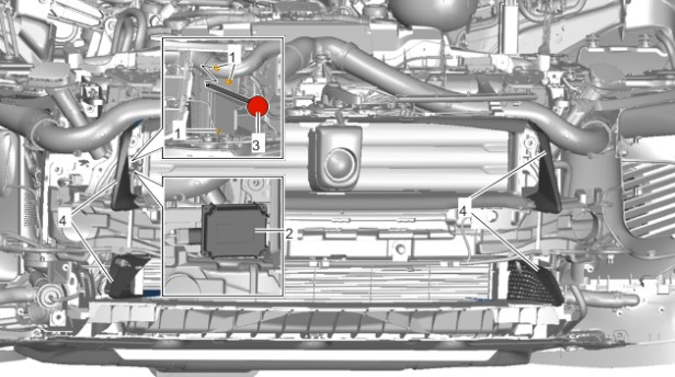 26 Разблокировать электрическое штекерное соединение -4- на датчике температуры ОЖ и отсоединить его.